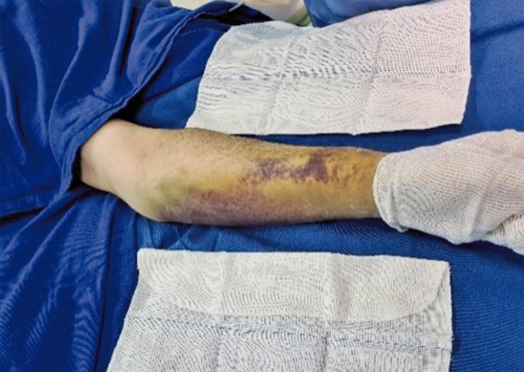 Neto,Benjamim Massao Harada; Daghlawi,Rodrigo; Marcos,João Ricardo Antunes; Marchiori,Gilberto Guilherme Ajjar; Galon,Micheli Zanoti; Rodrigues,Luciana Aparecida Salgado; Meireles,George César Ximenes. Compartment syndrome after spontaneous rupture of a left radial artery pseudoaneurysm. J Transcat Intervent, v.31, Dec. 2023. Available from: <https://jotci.org/article/compartment-syndrome-after-spontaneous-rupture-of-a-left-radial-artery-pseudoaneurysm/>. acess on 06 Mar. 2026. .