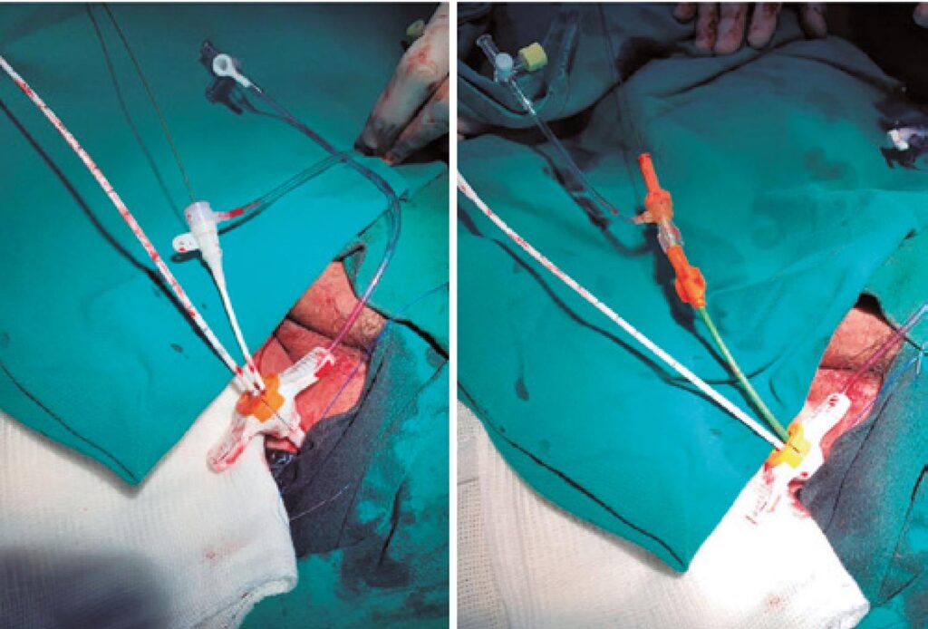 As intervenções coronarianas complexas têm volume crescente no Brasil e no mundo. Ao serem realizadas em pacientes de cada vez mais alto risco, novas técnicas são desenvolvidas quando o cardiologista intervencionista se depara com situações inusitadas, tal como a falta de acesso arterial seguro para a realização do procedimento. Relatamos o caso de um paciente com doença arterial periférica grave e artéria femoral direita ocluída, no qual utilizamos um único acesso (femoral esquerdo) para o posicionamento do Impella™ e do cateter-guia para angioplastia.
