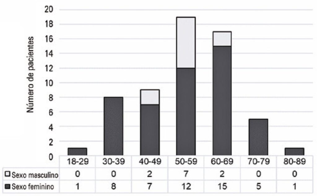A mediana da idade foi de 55 anos, e 83% eram mulheres. A maioria dos pacientes (60%) não apresentava nenhum ou tinha apenas um fator de risco cardiovascular. O infarto agudo do miocárdio sem supradesnivelamento do segmento ST foi o quadro clínico em 67% dos casos. A artéria coronária mais frequentemente envolvida foi a descendente anterior (47%). A maioria das lesões (77%) aparecia na angiografia como dissecção espontânea da artéria coronária tipo 2. O tratamento conservador foi selecionado como abordagem inicial na maioria dos pacientes (72%). A incidência geral de dissecção espontânea da artéria coronária de novo não foi significativamente diferente entre os pacientes tratados primeiramente com revascularização, em comparação com os que receberam tratamento conservador (p=0,953). No entanto, a recidiva da dissecção espontânea da artéria coronária ocorreu no vaso originalmente envolvido em 3 dos 15 pacientes tratados com revascularização, em comparação com apenas um entre os 43 pacientes que foram tratados de forma conservadora (p<0,05).