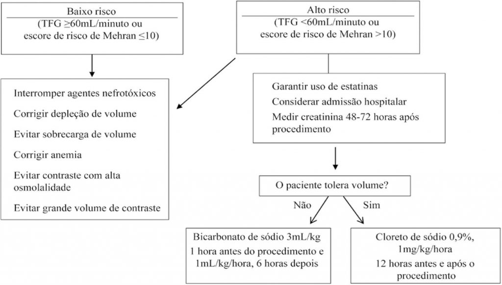 A lesão renal aguda induzida por contraste não é um evento raro após a exposição a este último e acomete cerca de 1 a 2% dos pacientes nos procedimentos radiológicos em geral. A incidência de lesão renal aguda induzida por contraste é ainda maior entre pacientes submetidos à intervenção coronária percutânea e varia de 3 a 19%, de acordo com o perfil de risco do paciente. Ela está associada a maior morbidade, mortalidade, tempo de hospitalização e custo de saúde. Como não existe tratamento específico após o estabelecimento do quadro, é muito importante identificar os pacientes de alto risco e prevenir a ocorrência dessa complicação, a fim de evitar desfechos adversos após a intervenção coronária percutânea.